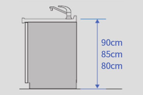 90cm、85cm、80cmの中からご家庭に合わせてピッタリの高さをお選びいただけます。